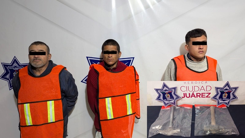 Ciudad Juarez, Chihuahua – Elementos de la Secretaría de Seguridad Pública Municipal arrestaron a Javier M. M., Ángel Guillermo H. A. y Pedro S. R., por su presunta responsabilidad en la comisión del delito de daños.