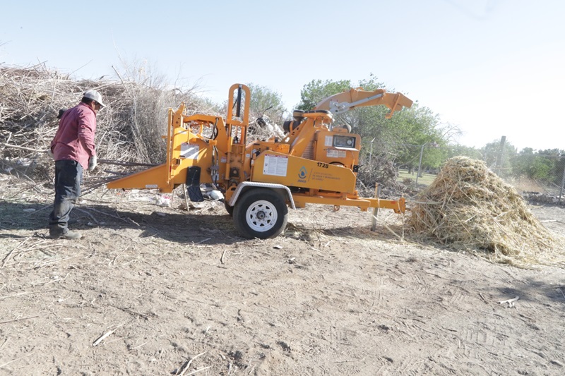 Ciudad Juarez, Chihuahua – La Dirección de Parques y Jardines realizó la trituración de ramas acopladas en el Vivero II de El Chamizal, con el fin de continuar con el proceso de preparación de materia orgánica para mejorar el suelo de parques públicos y camellones de la ciudad.