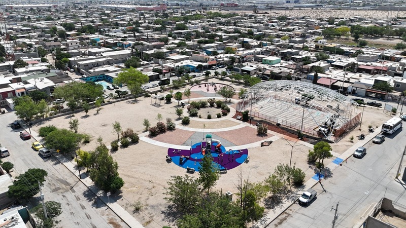 Ciudad Juarez, Chihuahua – Avanzando en el mejoramiento de los espacios públicos en distintos puntos de la ciudad, la Dirección General de Obras Públicas trabaja en la rehabilitación del parque Paquimé, ubicado entre las calles Tribu y Artesano de la colonia Paquimé.
