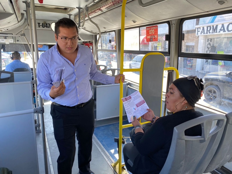 Ciudad Juárez, Chihuahua – Con el propósito de fomentar la conciencia y promoción de los derechos humanos en la ciudadanía, así como difundir los programas y servicios ofrecidos por la Dirección de Derechos Humanos del municipio, personal de la dependencia abordo las unidades del Juárez Bus y la Ruta 3B, responsables de cubrir el área poniente de la ciudad, como parte del programa “Ruta x los Derechos Humanos”.