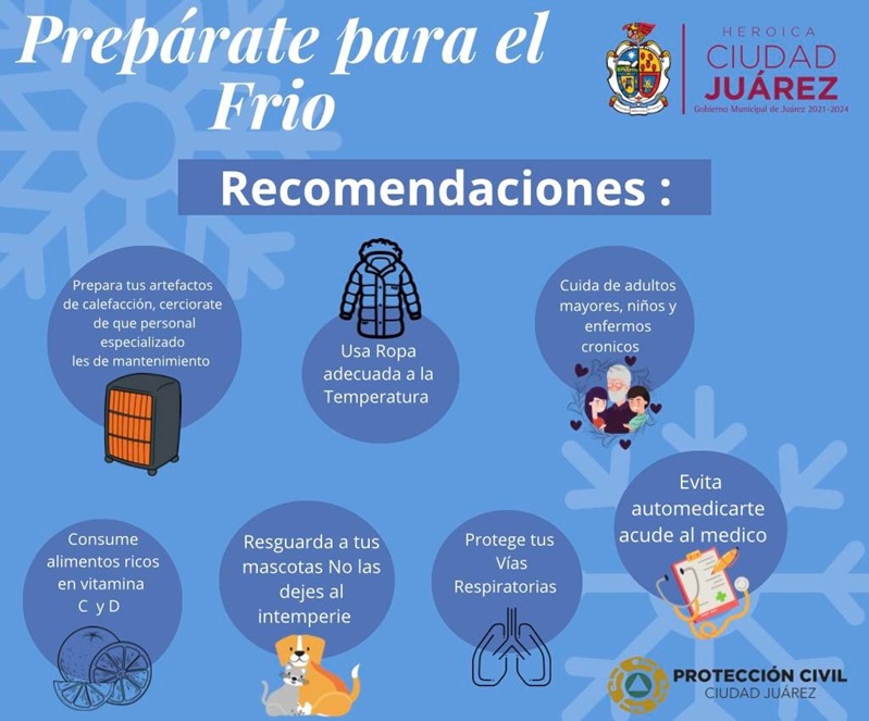 Ciudad Juarez, Chihuahua – Ante la llegada del frente frío número 8 a Ciudad Juárez, la Dirección General de Protección Civil ha emitido una serie de recomendaciones para garantizar la seguridad y bienestar de la comunidad local.