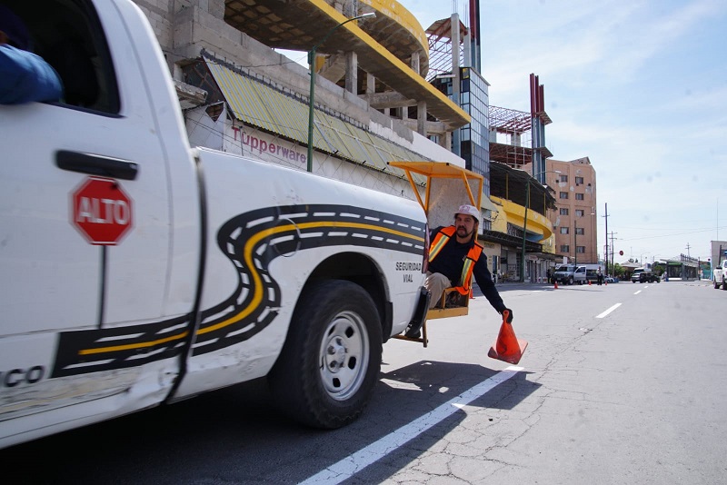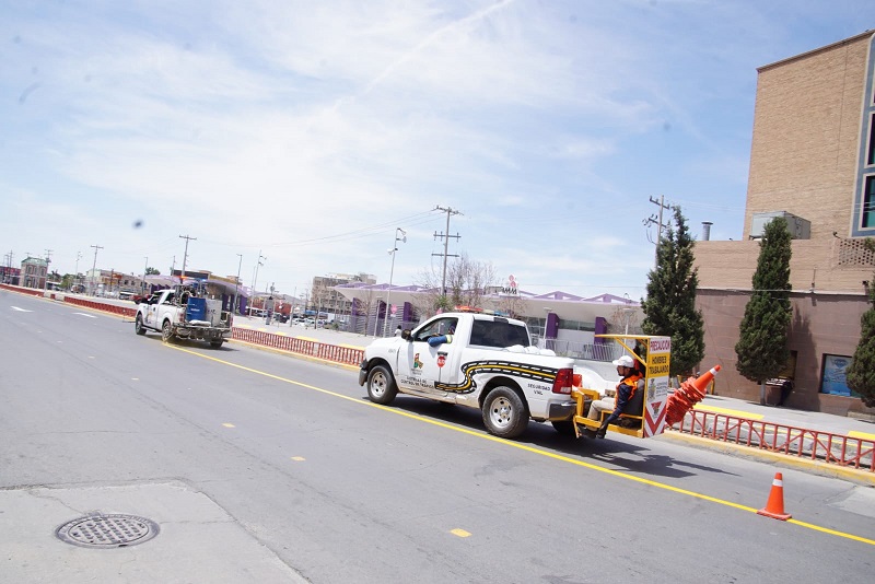 Ciudad Juárez, Chihuahua – La Coordinación General de Seguridad Vial, perteneciente a la Secretaría de Seguridad Pública Municipal, reforzó la señalización en un tramo de la avenida Francisco Villa, donde se está implementando un programa reordenamiento vial, en conjunto con el IMIP.