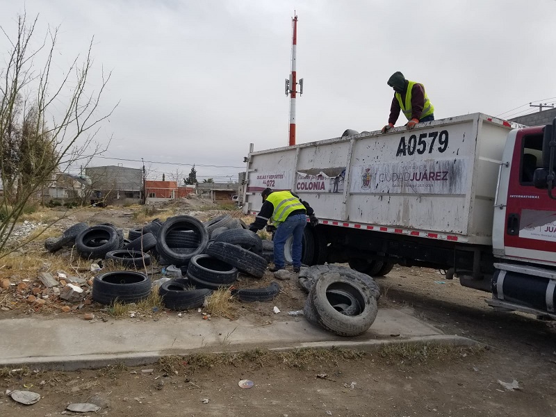 Ciudad Juárez, Chihuahua – Como parte de los trabajos programados que realiza la Dirección de Limpia, se desplegó este jueves un operativo de destilichadero en la colonia Independencia I, a petición de los vecinos del sector.