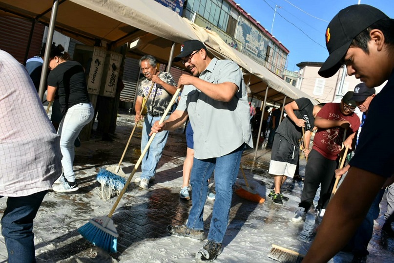 Ciudad Juárez, Chihuahua – Personal de la Dirección de Limpia llevó a cabo un operativo de limpieza en la Zona Centro de la ciudad, en coordinación con alrededor de 200 comerciantes, quienes se unieron a esta sexta Cruzada por el Centro Histórico.
