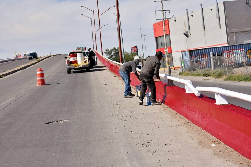 Gibran Solís Kanahan, titular de la dependencia, dijo que en este punto de entrada a la ciudad se trabaja en la limpieza de la zona, en la pintura del puente y en la estructura donde está la estatua de Benito Juárez.