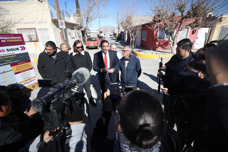 Ciudad Juarez, Chihuahua – El Presidente Municipal, Cruz Pérez Cuéllar, entregó la tercera calle pavimentada de este miércoles a los vecinos la calle Temosachi, de la colonia Anáhuac.
