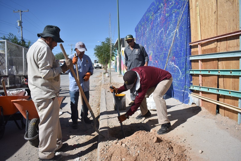 Ciudad Juarez, Chihuahua – Personal de la Dirección de Parques y Jardines, reforestaron los camellones en el fraccionamiento Urbivilla, en el tramo que comprende de la calle Prados del Cielo a Prados de Verano.