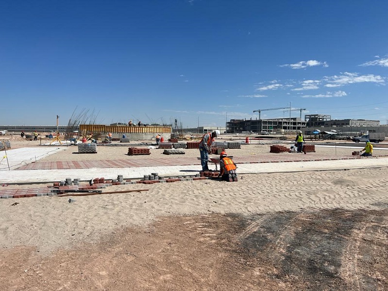 Además se llevó a cabo la cimentación de lo que serán los locales comerciales y baños de foro, mientras que en el estacionamiento uno se trabajó en el colado de guarniciones y riego de impregnación.