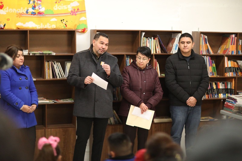 En la entrega también estuvieron la madre de familia Elizabeth Calvillo, la subdirectora del plantel del turno matutino, Alicia Quiroz y el coordinador de Infraestructura Educativa del Municipio, Ismael Rueda.