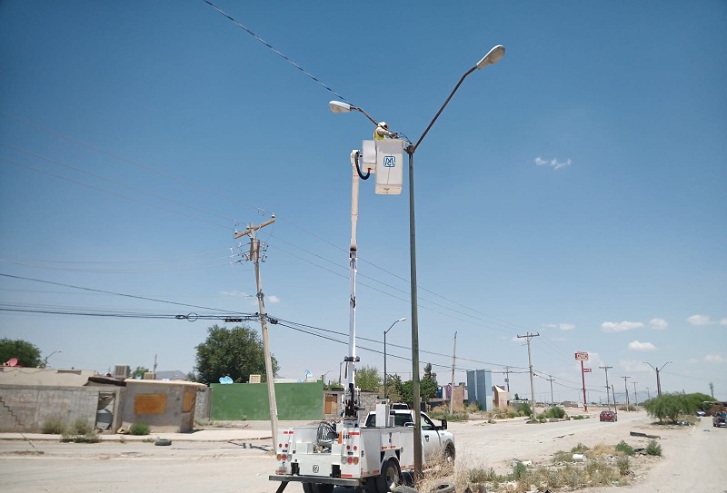 Ciudad Juárez, Chihuahua – Personal de la Dirección de Alumbrado Público le dio mantenimiento a la infraestructura de luminarias de la colonia Las Almeras, como parte de los trabajos que se está haciendo para mejorar los servicios públicos en las colonias.
