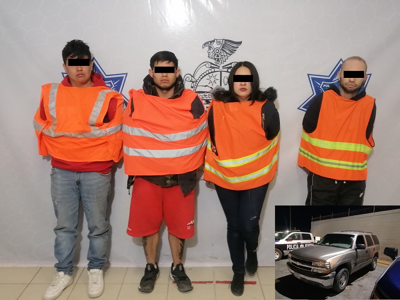 Ciudad Juárez, Chihuahua – Agentes de la Secretaría de Seguridad Pública Municipal detuvieron a Abraham E. A., Alan B., Isaac E. A. y Johana J. M., por su presunta responsabilidad en la comisión del delito de privación de la libertad.