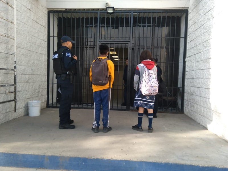El resguardo se realizó luego de que agentes municipales realizaban recorridos de prevención y vigilancia en la colonia Monumental, en donde se percataron de dos adolescentes con uniforme escolar que caminaban por la vía pública en el cruce de las calles Sófocles y Delfos, razón por la cual fueron abordados por protocolos de seguridad.
