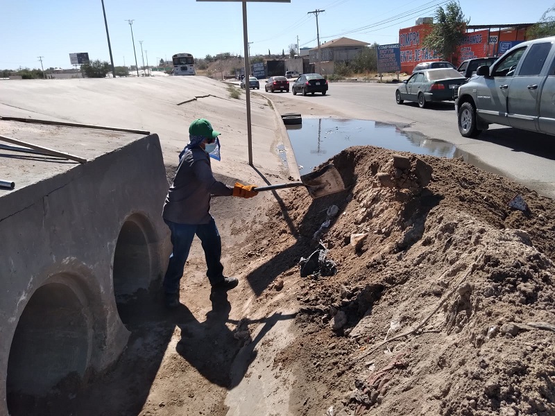 Dijo que durante las últimas semanas el personal de la dependencia también atacó el problema de acumulación de material de arrastre por falta de mantenimiento en la intersección del bulevar Independencia y carretera Juárez Por venir, donde realizaron el retiro de 20 toneladas de desechos.