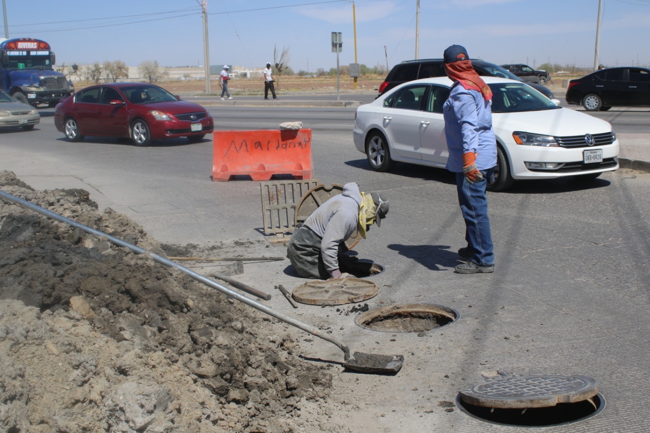 Ciudad Juárez, Chihuahua – Como parte de los trabajos, que la Dirección General de Obras Públicas del Gobierno Municipal realiza a través del operativo de limpieza de pluviales, cuadrillas empleados realizan acciones de mantenimiento en el cruce de la carretera Juárez Porvenir y bulevar Independencia.