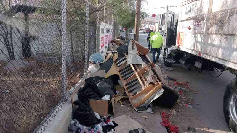 Ciudad Juarez, Chihuahua – Personal de la Dirección de Limpia retiró basura, escombro y tiliches en la calle Oro y Acacias en la Zona Centro de la ciudad, dio a conocer Gibran Solís Kanahan, encargado de despacho de la dependencia.