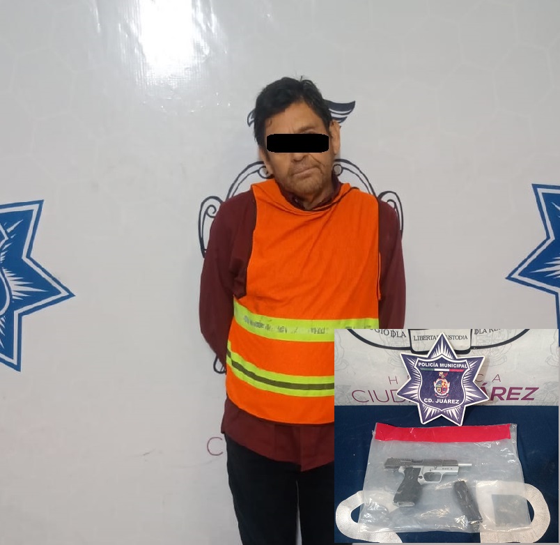 Ciudad Juárez, Chihuahua – Elementos de la Secretaría de Seguridad Pública Municipal arrestaron a Roberto V. A., por su presunta responsabilidad en la comisión de delitos contra la ley federal de armas de fuego y explosivos.