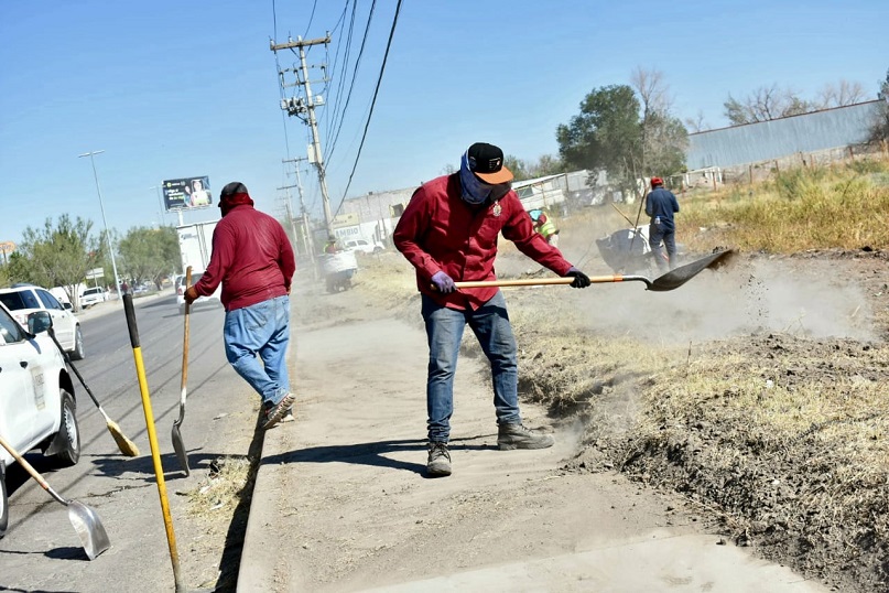 Ciudad Juárez, Chihuahua – Tras 20 días de trabajo, personal de la Dirección de Limpia continúa con las labores de limpieza y mantenimiento en el bulevar Independencia, en un tramo de 13 kilómetros que va desde la carretera Juárez Porvenir a la glorieta del Kilómetro 20.