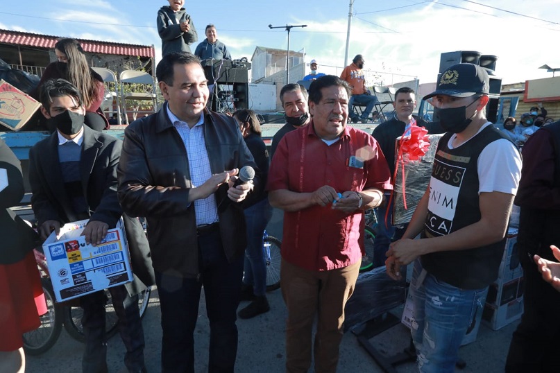 Ciudad Juárez, Chihuahua – En convivio navideño en la colonia Azteca, el alcalde se dirigió a los asistentes para reiterar el compromiso con la transformación de Ciudad Juárez e invitó a las familias juarenses a poner su granito de arena.