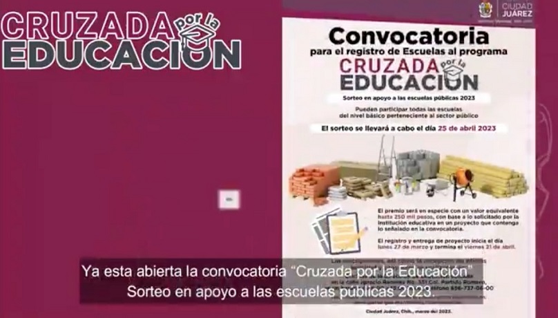 Ciudad Juárez, Chihuahua – El viernes de la siguiente semana concluye el registro para participar en la Cruzada por la Educación, por lo que la Dirección de Educación Municipal invita a los docentes a inscribirse en el sorteo en apoyo a las escuelas.