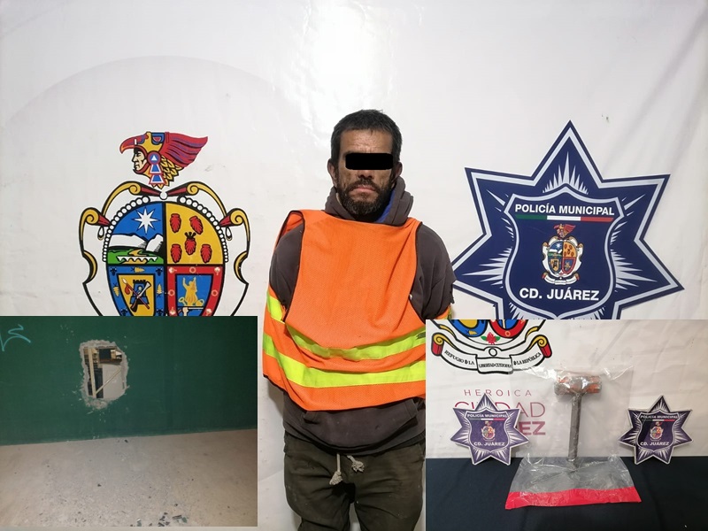 Ciudad Juarez, Chihuahua – Elementos de la Secretaría de Seguridad Pública Municipal arrestaron a Eduardo C. J., por su presunta responsabilidad en la comisión del delito de daños casa comercial y/o lo que resulte.