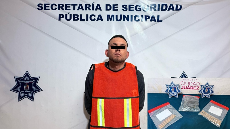 Ciudad Juarez, Chihuahua – Elementos de la Secretaría de Seguridad Pública Municipal arrestaron a Jonathan Gabriel C. E., por su presunta responsabilidad en la comisión de delitos contra la ley federal de armas de fuego y explosivos.