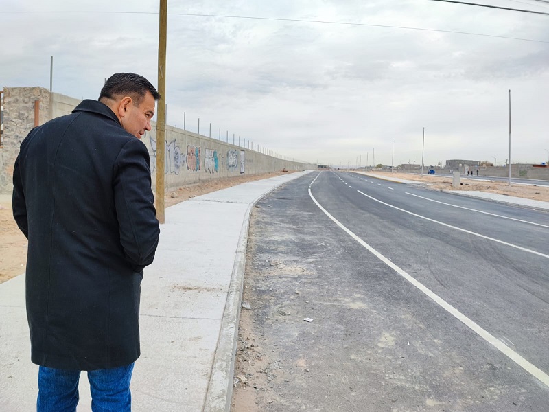 Ciudad Juárez, Chihuahua – El Presidente Municipal, Cruz Pérez Cuéllar, hizo un recorrido para supervisar el avance de los trabajos de pavimentación en la avenida Lote Bravo, obra que beneficia a toda la comunidad escolar del Centro de Bachillerato Tecnológico Industrial y de Servicios 270 (CBTIS) y a las familias que transitan por el sector.