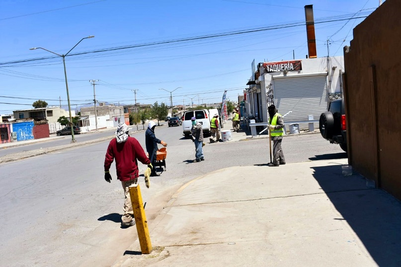 Ciudad Juárez, Chihuahua – Cómo parte de los trabajos de mantenimiento de calles y avenidas principales de la ciudad, personal de la Dirección General de Servicios Públicos trabaja este día en la calle Ramón Rayón.