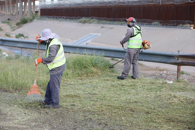 Ciudad Juárez, Chihuahua – Brigadas de la Dirección de Limpia trabajan en la limpieza del bordo del río Bravo, ya que será uno de los tramos que se recorrerán en la carrera ciclista Chupacabras, evento que se llevará a cabo el próximo 8 de octubre.
