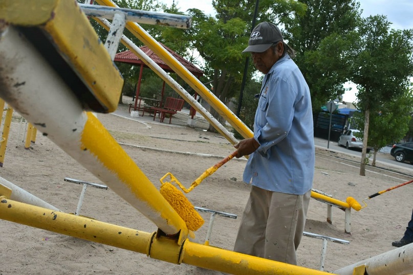 Ciudad Juárez, Chihuahua – Como parte de las tareas de mantenimiento de los parques de la ciudad, personal de la Dirección de Parques y Jardines trabaja esta semana en las mejoras al parque de la colonia Urbivilla III, ubicado entre las calles Sierra Yamasa y Monte k2.
