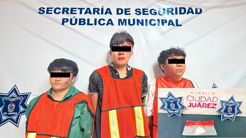 Ciudad Juarez, Chihuahua – Agentes de la Secretaría de Seguridad Pública Municipal adscritos en la Estación de Policía del Distrito Valle, arrestaron a Martín S. M., Ricardo R. Z. y Ángel M. R., por su presunta responsabilidad en la comisión de delitos contra la salud, resistencia a particulares y daños al patrimonio municipal.