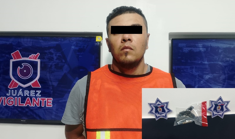 Ciudad Juarez, Chihuahua – Elementos de la Secretaría de Seguridad Pública Municipal adscritos al Grupo de Operaciones Especiales, arrestaron a Juan Carlos P. C., por su presunta responsabilidad en la comisión del delito de robo de vehículo con lujo de violencia y delitos contra la ley federal de armas de fuego y explosivos.
