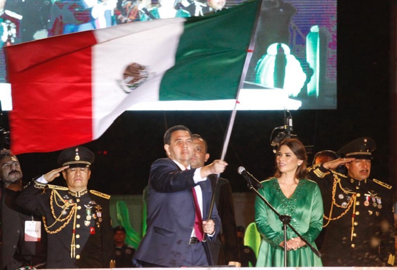 En el acto solemne, el presidente municipal fue acompañado por su esposa Rubí, el comandante de la guarnición militar, general brigadier del Estado Mayor Presidencial Francisco Antonio Enríquez Rojas, así como el secretario del Ayuntamiento, Héctor Rafael Ortiz Orpinel quien leyó el acta de independencia declarada por el Congreso de Anáhuac en 1813 para decretar la soberanía de México de la monarquía española y de cualquier nación.