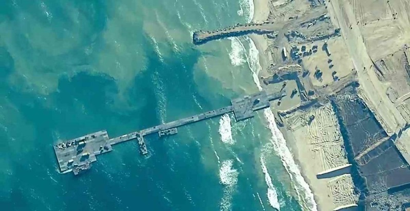 La plataforma instalada frente a la costa de Gaza para llevar ayuda a ese enclave palestino consta de dos estructuras: un muelle flotante al que se amarran los barcos cargados con el material y una calzada por donde transitan los camiones que llevan los suministros a tierra y que es la que se dañó por la lluvia.