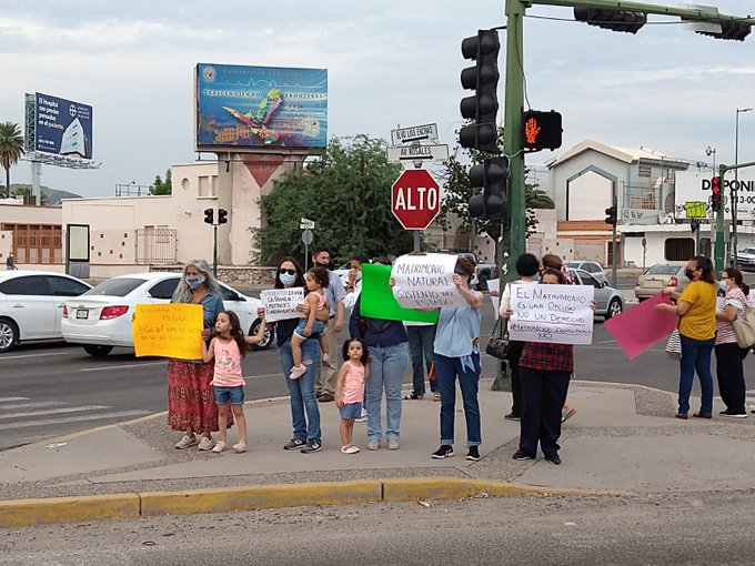 La protesta por parte de las agrupaciones defensoras de la vida, se realizó frente a la Universidad de Sonora, con el objetivo de pedirle a los diputados locales, que se abstengan de votar el matrimonio igualitario en tanto no se socialice y se integren las comisiones.
