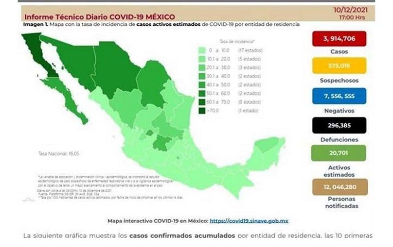 Ciudad de México, Estado de México, Nuevo León, Guanajuato, Jalisco, Tabasco, Puebla, Veracruz, Sonora y San Luis Potosí acumulan el 65 por ciento de los contagios acumulados en lo que va de la pandemia.
