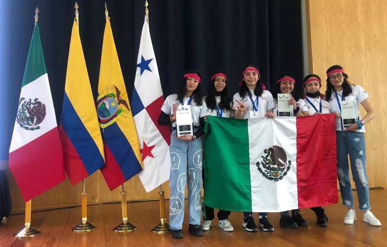 Las seis alumnas del plantel 11 del CECyTECH, Ciudad del Conocimiento de Ciudad Juárez con el apoyo del Coach Gabriel Salazar Chávez, destacaron al obtener tres galardones: Campeonas de Robot Skills, Campeonas de Excelencia y Campeonas de Torneo.