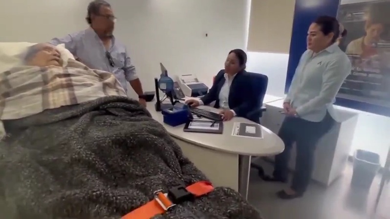 Las imágenes y videos que circulan en redes sociales muestran esta escena: Fidelia Vásquez Nuño, una mujer de casi un siglo de vida, siendo ingresada en una camilla a las oficinas de la sucursal bancaria, en un esfuerzo para poder acceder a lo que por derecho le corresponde.