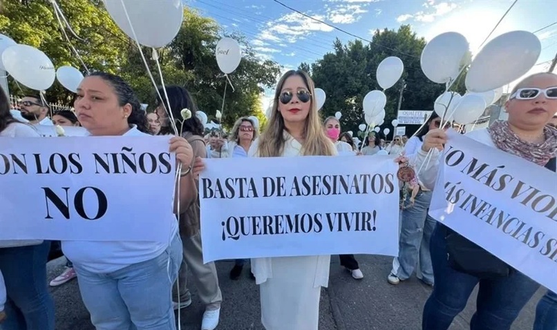 “A ver si sigue diciendo que todo está normal, que todo está bien”, dijo una de las madres que marchaban con pancartas exigiendo justicia.