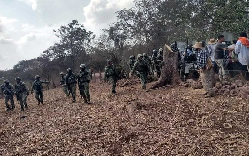 El hecho ocurrió a las 11:00 horas, cuando un numeroso grupo de soldados se acercó al ejido y los habitantes se colocaron frente a ellos.